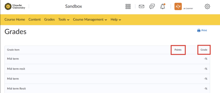 Tip: Je kan jouw cijferlijst ook uitprinten door op ‘Print’ te klikken.